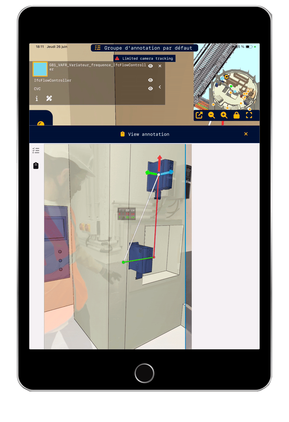 Prenez instantanément vos cotes dans le réel, dans la maquette ou mesurez les décalages entre le réel et la maquette.